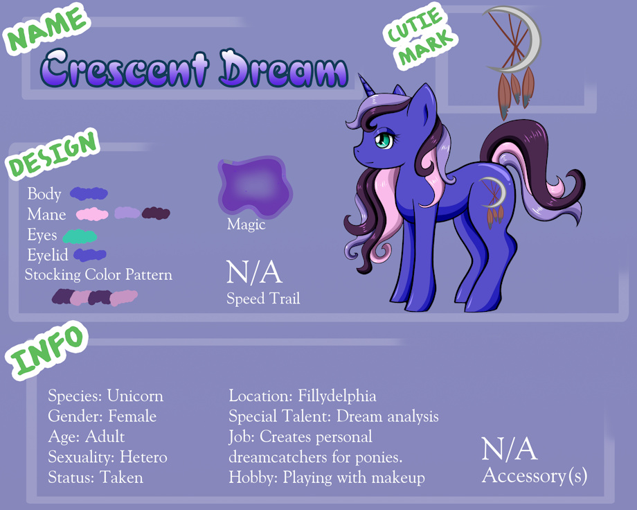 Ponies with nightmares or sleeping issues come to her for help. She provides them a custom dream catcher that will help with their sleep.