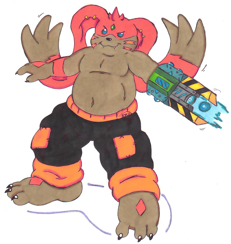 Tony is a Gargomon, a rather chubby Digimon who's species wield large firearms on their hands (which don't seem to be removable, at least from what's been shown). Unlike his normal counterparts, Tony sports a rather unique color palette and wields a almost experimental type of laser cannon on both arms, which are removable (they break down into a smaller, easily carried form for non-combat situations). Normally, Tony's not one to bring attention to himself or stick out in a crowd, so he prefers quiet, peaceful spots to relax/train/etc., but he's also okay with the loud hustle and bustle of the city/metropolis scene if with other people. As with some of my OCs, he's also okay with random acts of affection, so long as it doesn't escalate into something 'overly' friendly (a hug, glomp, or random coiling is fine, but kisses and overly friendly gestures make him uncomfortable). He's also ticklish (not surprising) mainly on his large paws, so those wanting to tease or mess with the chubby Digimon have an easy weakness to exploit.