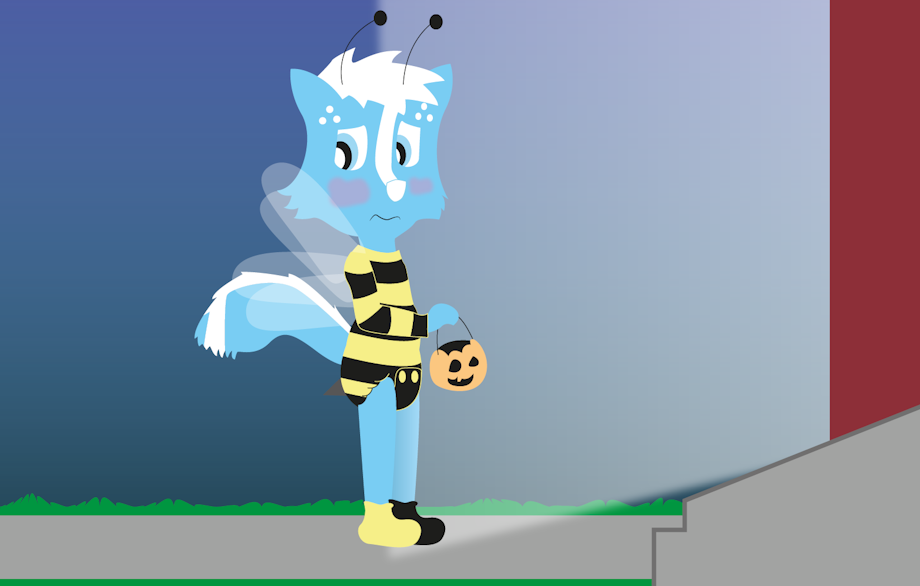 A pretty cute costume for Gussy goes trick or treating, a Bee onesie. doesn't he looks precious?