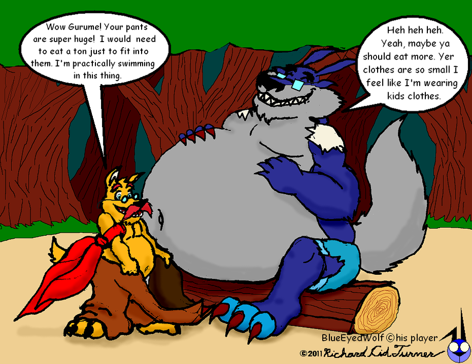 My part of a trade with :iconBlueEyedWolf: When you think about about they both have some things in common. Both are lovable wolves. Both like to eat. Both like wear glasses, and both well known. However it seems they have run into a snag when it comes to clothes and body types. :iconBlueEyedWolf: is much smaller than Gurume and Gurume's clothes (or lack of) are just slipping off him. Gurume on the other hand, well.. it seems the only thing that seems to fit on him are Blue's glasses, every thing else looks like it has ripped. Who knows, maybe :iconBlueEyedwolf: will start packing on the pounds, because I seriously doubt Gurume will slim down.