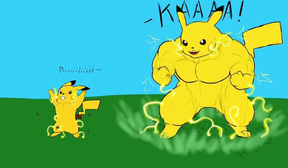 Right now i think i might take a page out of :iconFurry: and do doodles of situations of the show but with Pikachu twice his own size and packing muscles
