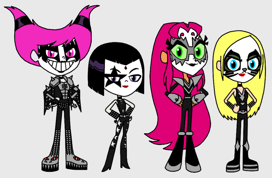 For my first pic of the month my favorite girls from Teen Titans don the attire of the legendary band KISS and invite you to ROCK N ROLL ALL NIGHT, AND PARTY EVERYDAY!