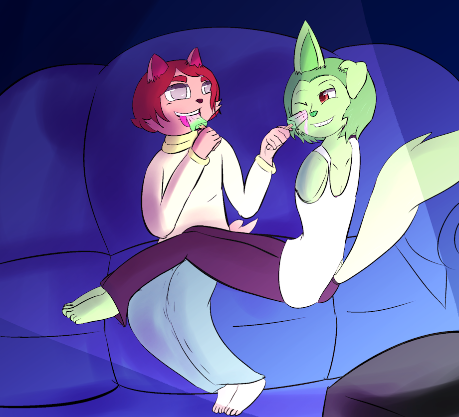 Caesar & Delano sharing a treat - Commission