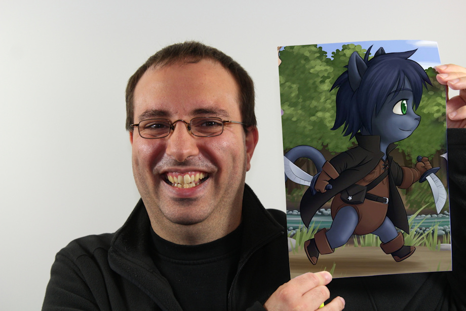 I took my photo and used GIMP to put the image of my fursona on the paper.