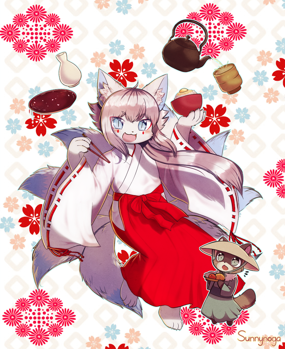 An assignment i did for literature class. I picked Inari (nine-tailed fox), the, and the Tanuki's name is Taro. Their design and everything is subject to change in the future if i get emotionally attached to them enough.