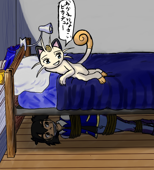 Did not use bondage as a keyword because I don't think this picture qualifies. I don't even know if it's kidnapping. He just tied Ash up.