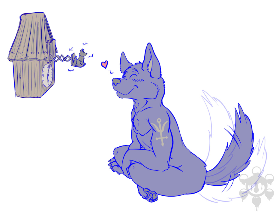 Had this idea, when I sat down to draw his sketch, to draw something from one of the first convos we ever had. He had just gotten a custom wolf coo coo clock made for himself X3 Have to say I was a little jelly.