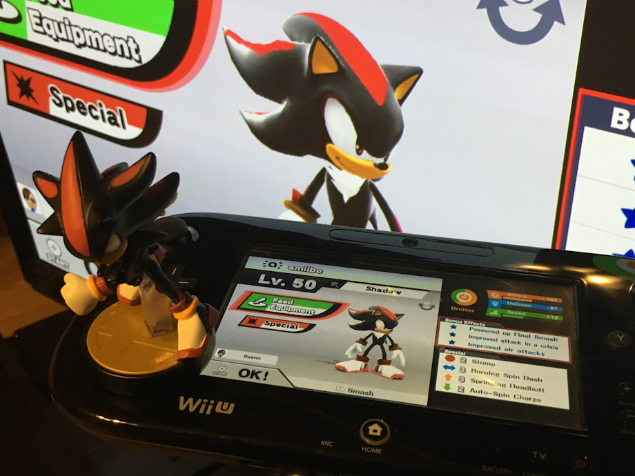 That's right, Shadow the Hedgehog is now FINALLY out as DLC for Smash Bros Wii U!! Just scan his amiibo and start playing... lol XD sorry but it's not true. but you can mod your Smash Bros Wii U to still play as Shadow over Sonic. Sorry again for making any hype by the submission name.