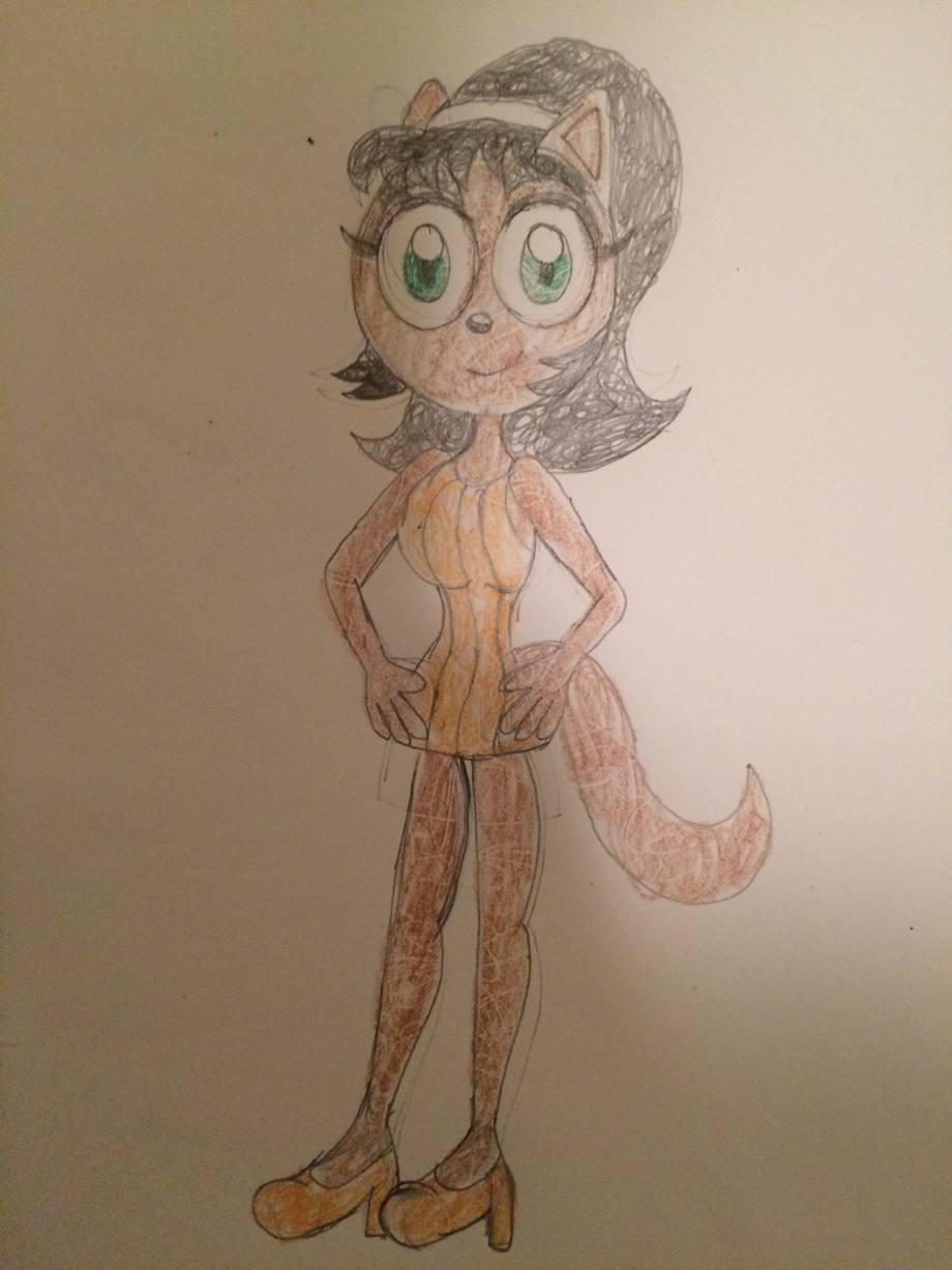 Here's a picture I drew of Kitty Katswell in an orange dress that resembles a pumpkin and orange high heels. Nothing special here, just keeping it simple.