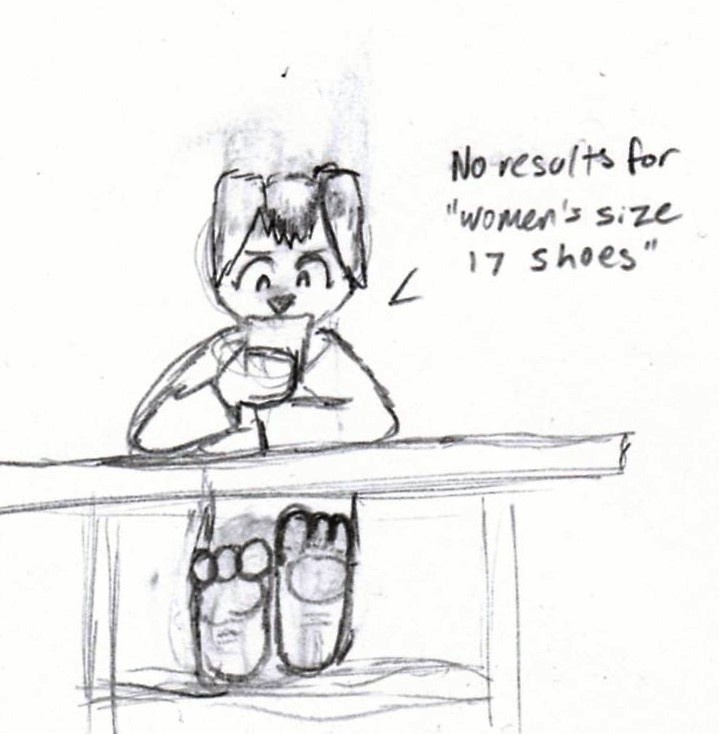 Her feet too big for her gotdamn boot (Did I meme right?) Anyways, decided on a whim that Sage has larger than average feet paws. As if she didn't have enough problems. So, um, obviously a sketch, and her feet are large, but the sketch isn't too scale. But reintroducing this girl.