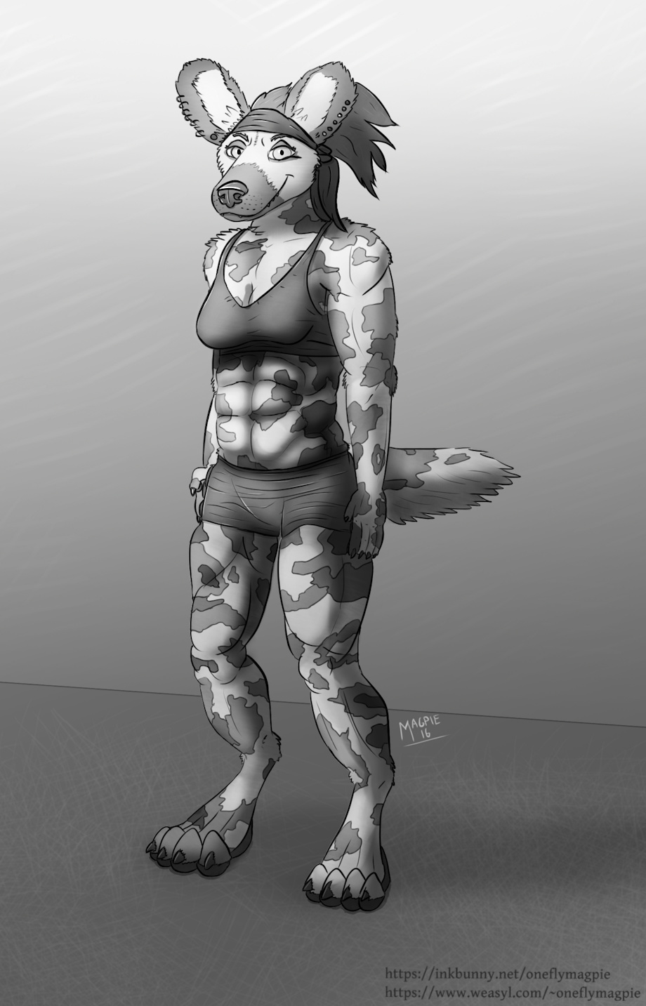 Tenth 'inktober' entry! Hooray! This is Kanai, a swole African wild dog / painted dog. She's very competitive, very friendly and very strong--and is a baby of my friend Wiggleshark ( http://wiggleshark.tumblr.com ) She's precious, I feel!