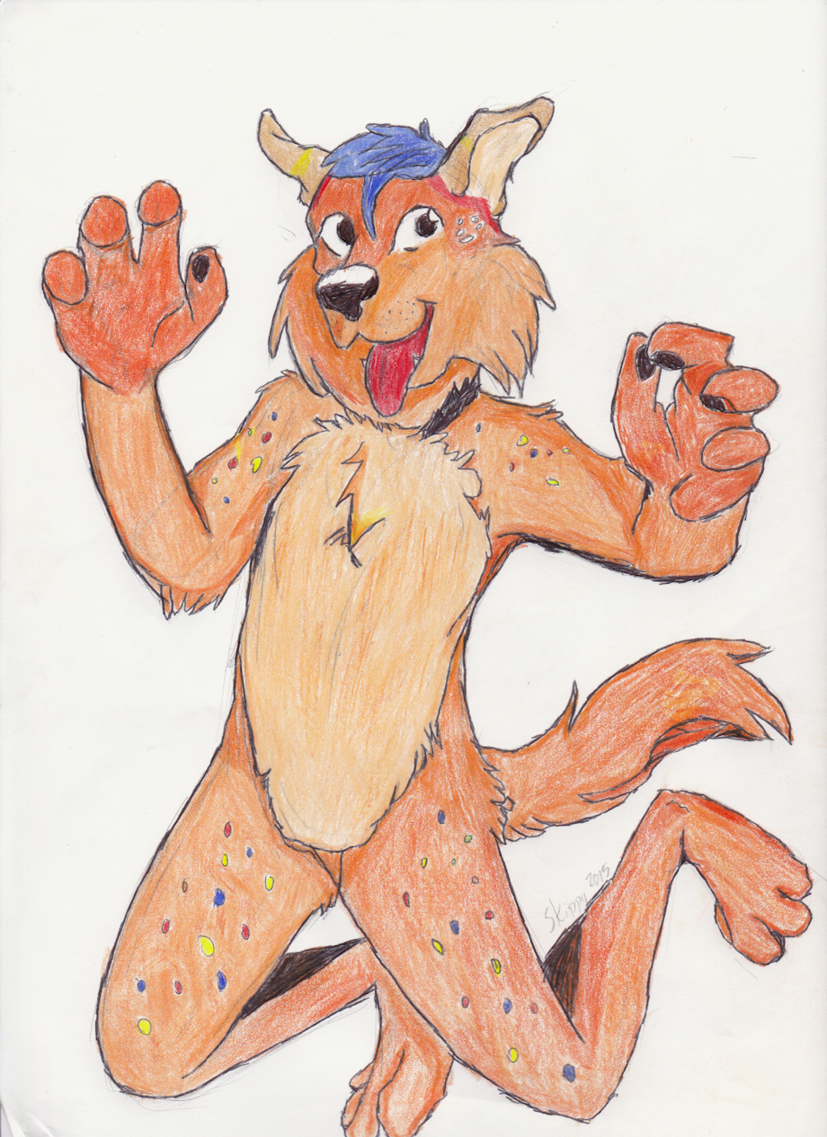 I slightly messed up on his cheeks' colour scheme, and a little bit on the tuft on his chest, cause I got distracted while i was colouring it, and I was like, oh, too late to change it, so I went on. I know ya wanted no-pads on the fingers, but, I realized this after-the-fact, so I just went ahead with them. Also we didn't give you enough sprinkles. X3 (Another thing that bugs me, now that I look at it, is the shadowing of his legs, something seems off, but eh just me I suppose.)