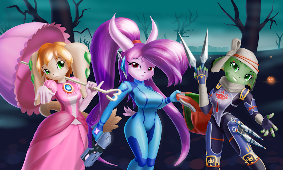 Freedom Planet halloween pic with Peach, Samus and Sheik.
