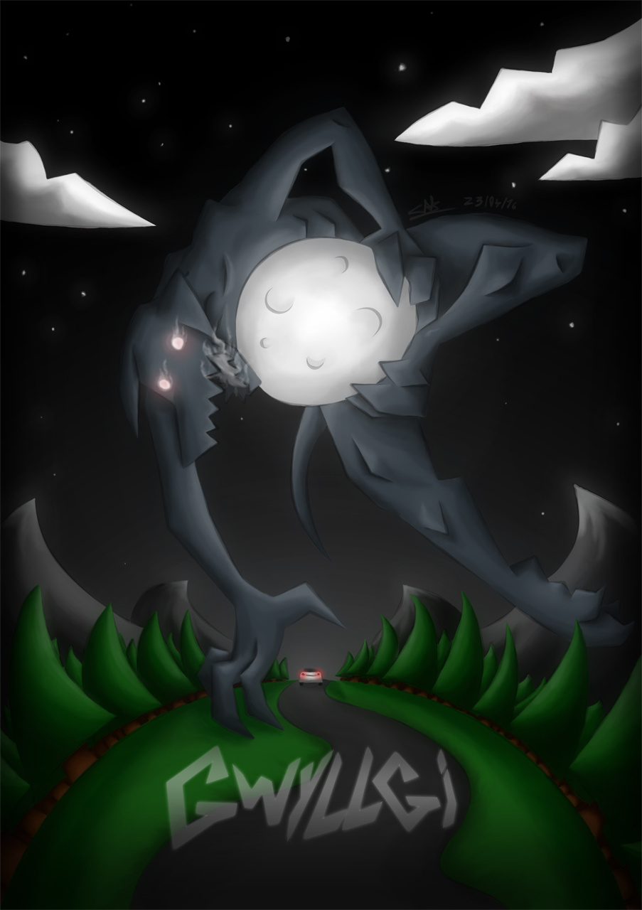 The Gwyllgi is basically a "Black Dog" or a sort of hellhound, which you meet on haunted roads. And it's obviously not a good thing.