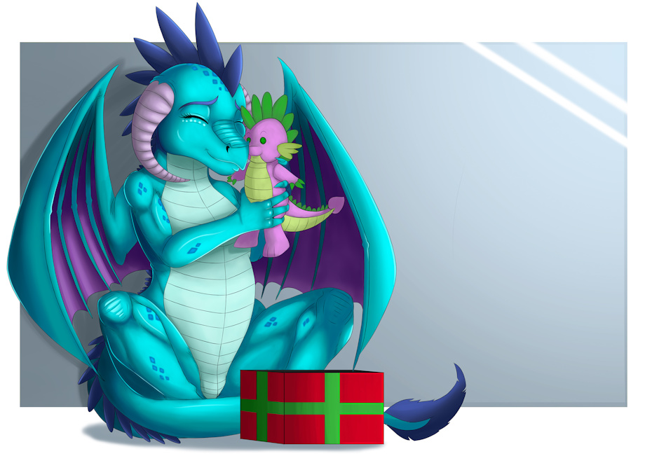 Having decided to overcome her issues with hugs and physical contact, Ember has been given something to practice on, the design of which is absolutely not based on any real life person or dragon. Seriously, it's not.