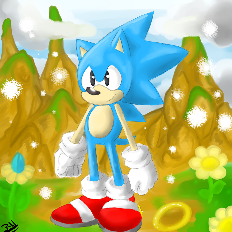 Nice pic! It deserves more comments! I like how Sonic was drawn, his expression, the clouds in the background and the flowers! The mountain really adds to the great visuals! Once again, nice job!