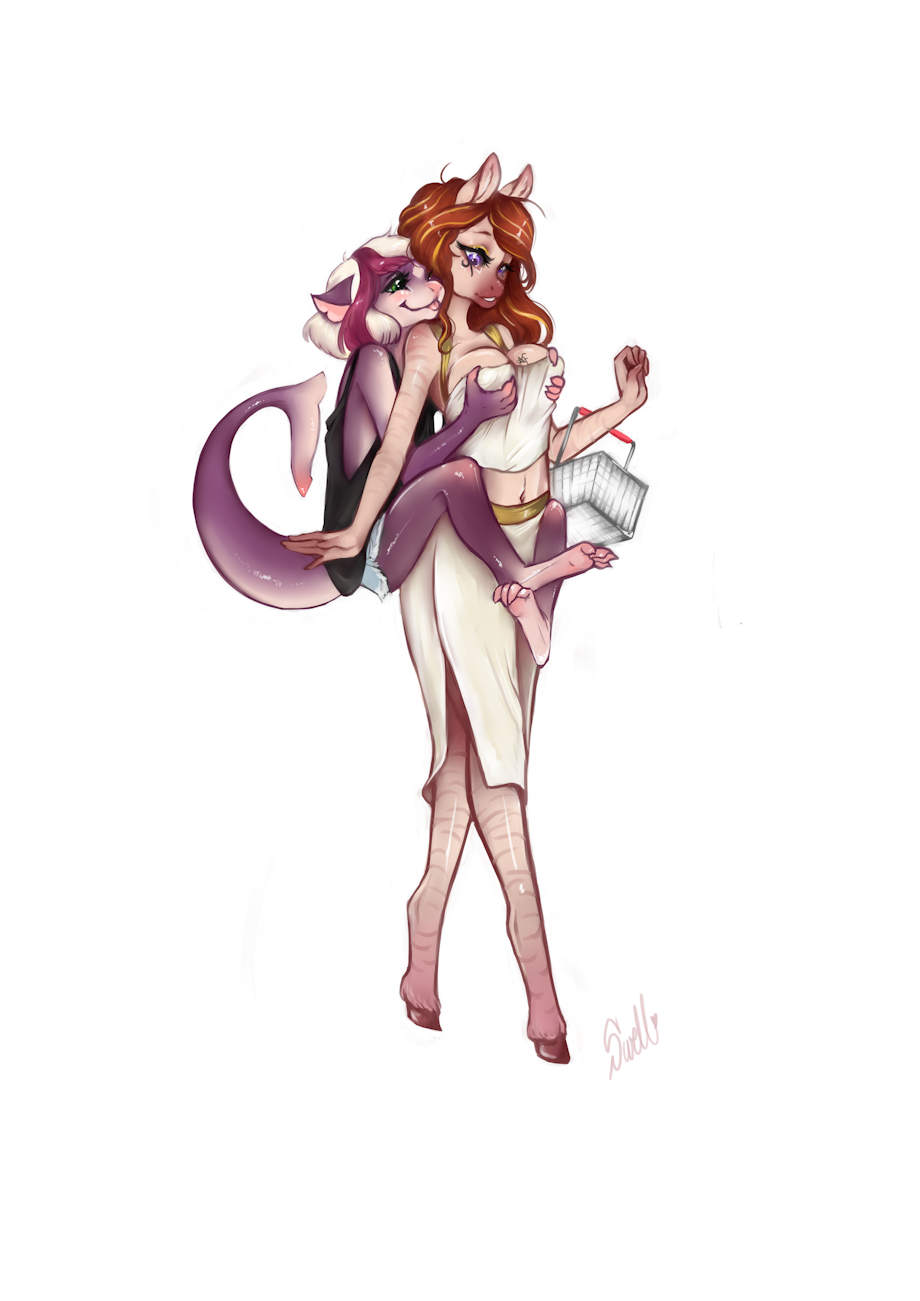 Melody, stalking her prey silently through the grocery store... the jaws song playing in her head. Duuhhh dun, Duuuuh dun... da dun, da dun, da dun, da dun.... Unbeknownst to the lovely mare she was being quietly followed by the playful little slider. (that's sugar glider/shark... slider... what? I like it) As Aeylin makes her way into an empty area of the market Melody strikes, hopping onto Aeylin's back and locking her legs around the pony's hips. Grasping at Aeylin's breasts, firmly groping the voluptuous mounds as the slider presses herself to the mares back. "Pony Ride!" Melody cheers out, giggling excitedly.