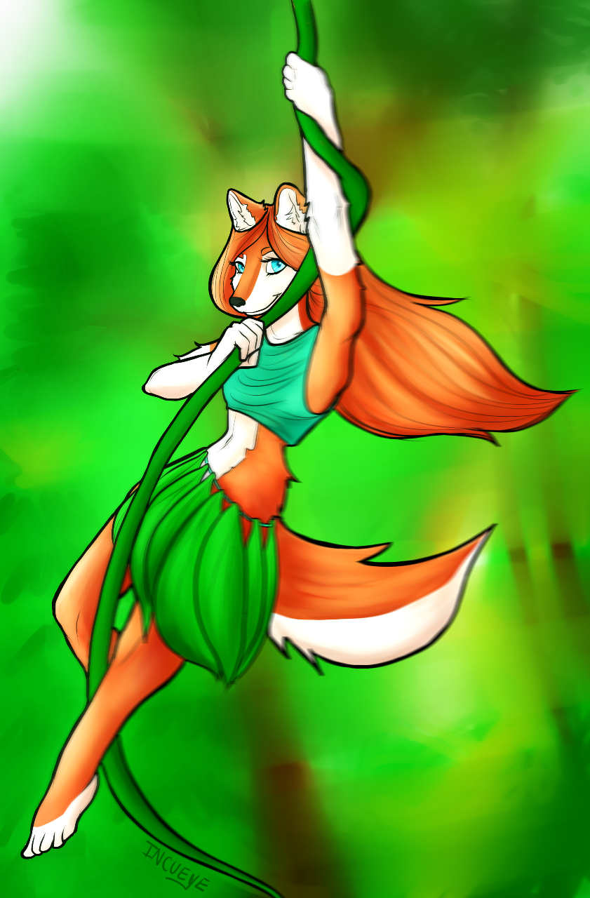 She was loads of fun to draw. This is my first time with a painted background but this one was a lot easier to do because I had to blur it for motion. I still had to do details on the background because it's supposed to look like a jungle. I believe I did well in that area. :D