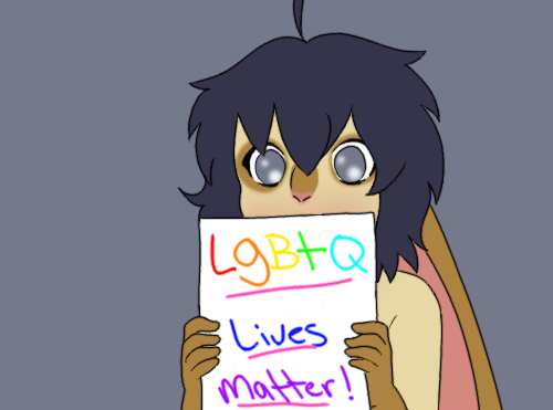 im not starting a fight? i drew a picture of my character holding a sign to promote awareness that some people are being harassed for being who they are