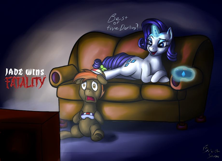 Button Mash stays up playing video games with Rarity and bites off a bit more than he can chew