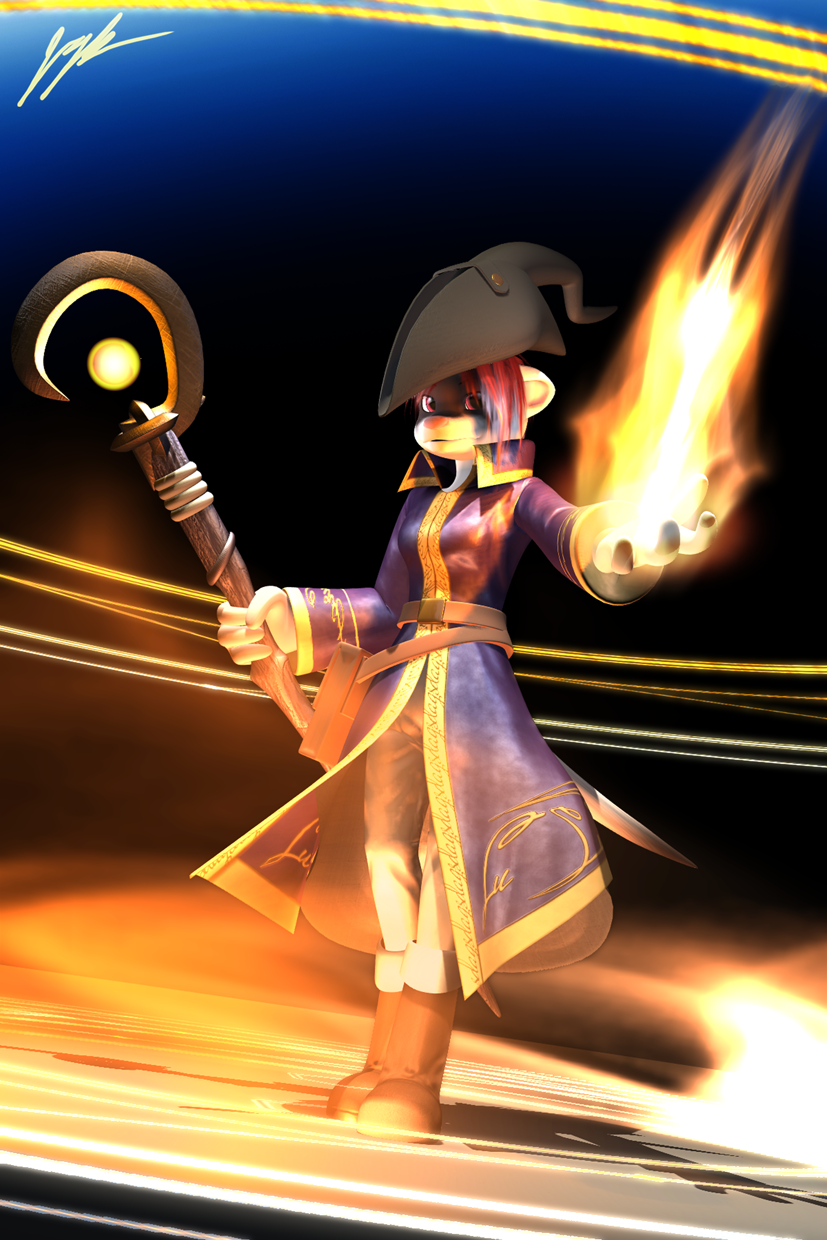Here's a ferret mage from another time. She has an affinity to fire or anything that goes boom for whatever reason. And somewhere along the way she learned of the existence of bicorns/pirate hats and fashioned one out of her plain wizard's hat.