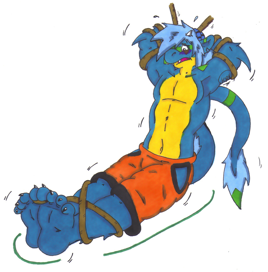 Such a embarrassing predicament to be in. Is it just me, or does Calder have really cute toes? xP