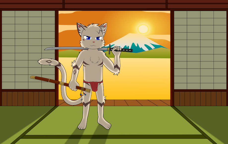 i draw you OC wearing only a Fundoshi and holding a Katana i hope you like it :)