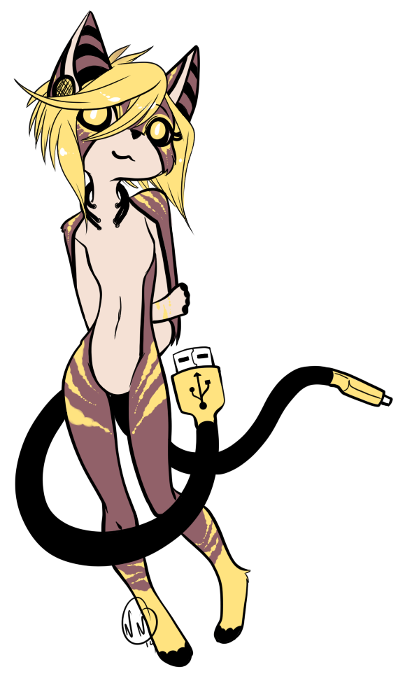 His tails have two separate jobs, the USB tail can(through strands of wires) interface with anything data related, his jack tail can interface with audio and visual devices