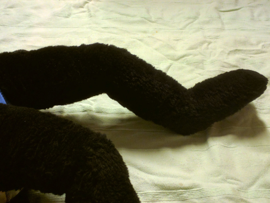 Design One skunk girl, in real human size; and can wear normal clothing. The plush is made out of a fur-like fabric, with sewn on eyes. Includes animal-like features such as ears and paws. Protruding breasts and buttocks to better fill out clothes. – All materials used are completely vegan. Not animal based; only synthetic or floral substance used.