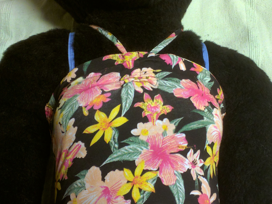 Clothes Due to the larger head, most clothes has to be put on from the bottom. Tops and dresses with straps is easiest, or clothing that can be opened up.