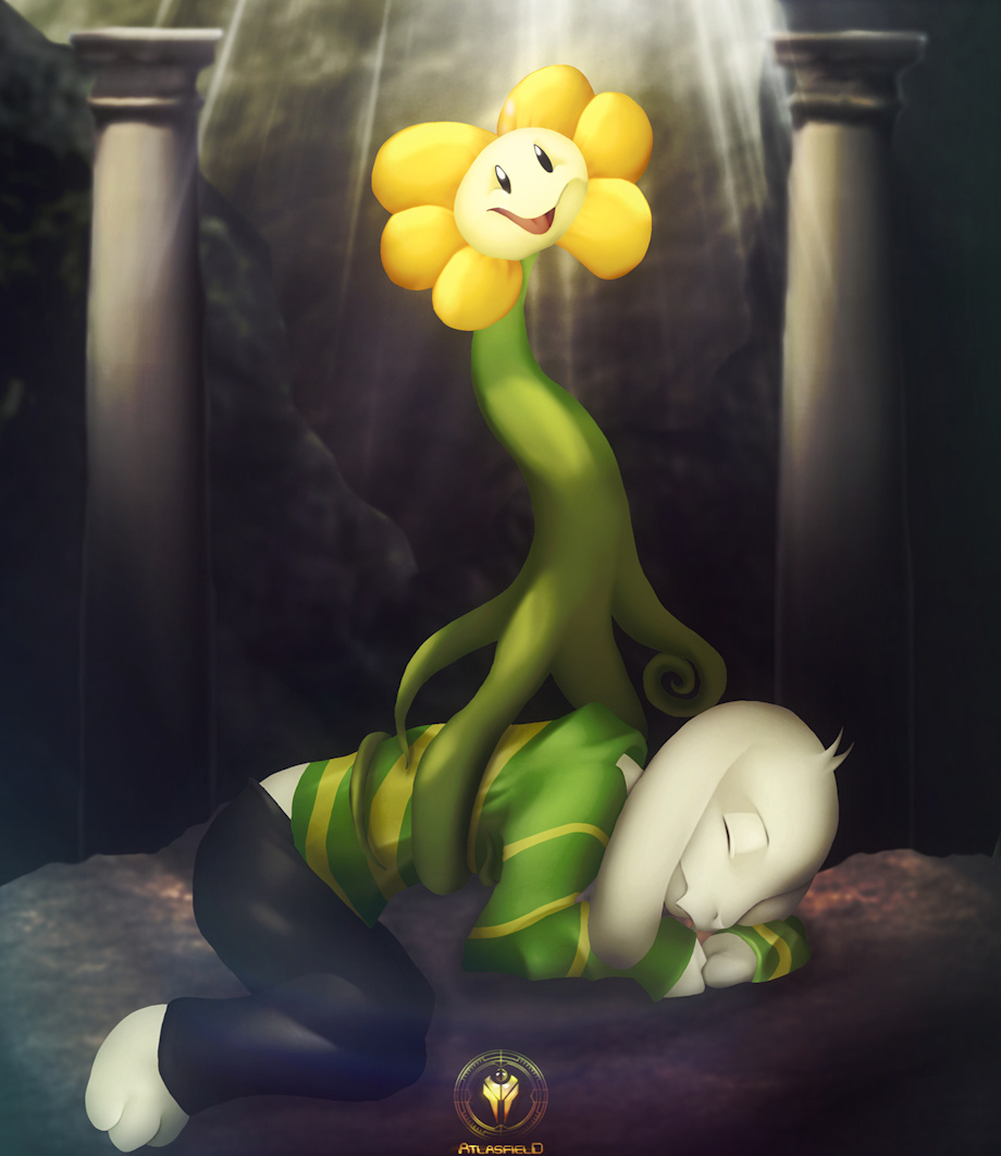So sorry for the fans of Undertale, I know the game lost interest time ago, but well, there is, a delayed picture of Asriel Dreemurr and Flowey, the idea is random, maybe representing the birth of Flowey, or something more...