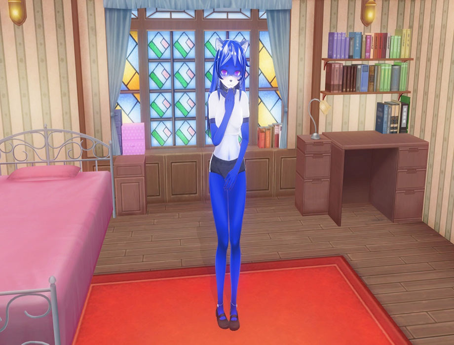 Just Kura at in her girly lil room back at home with Unitus (Uni for short) wearing her school P.E. Uniform and Bloomers.