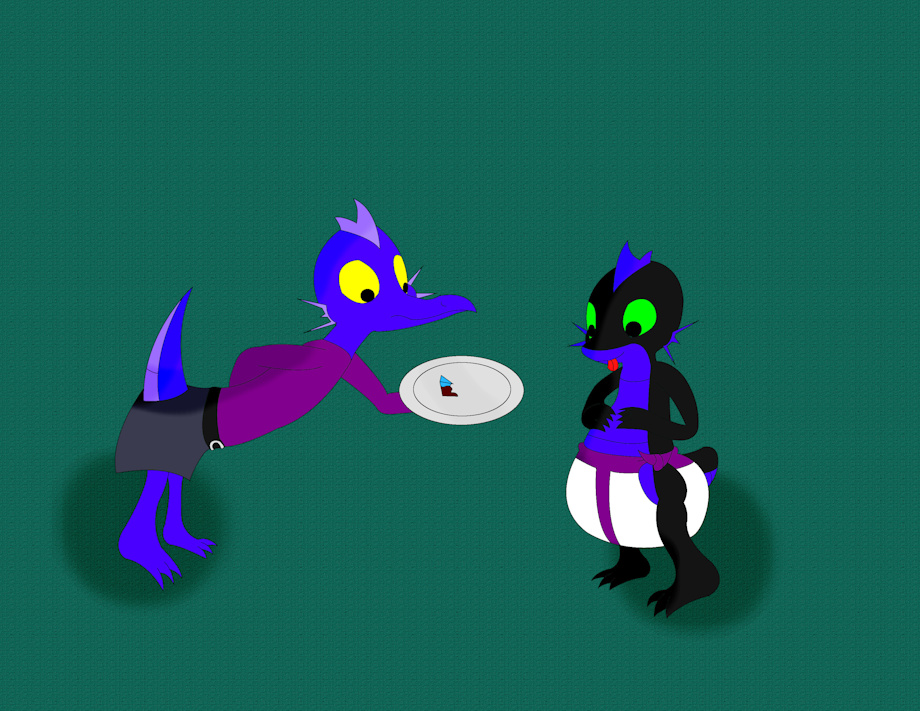 Anelie was then shocked when the hungry little Dragon seemingly devoured the whole cake, leaving only a partial slice. His stomach expanded greatly, his pelenka looked like it could snap off at any minute. Leon looked at the plate, then at Anelie.