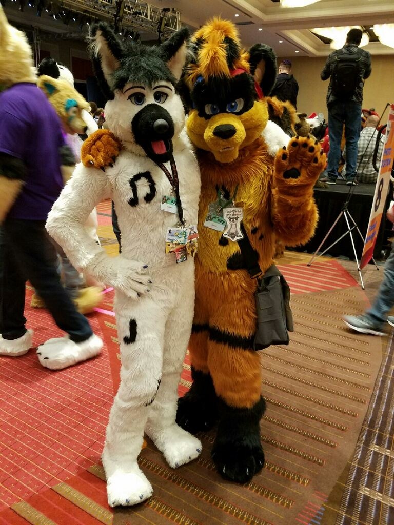 Because he's a music wolf, and this was taken before we played musical chairs in our fursuits :P