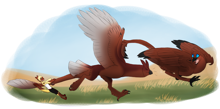 Leiz grabbed onto the tail of the large dragon - the small feline trainer yelling at his stryx to "STOP!", but not to much avail. At least Timo chose to run rather than fight, and with the cat on his tail, Dorro was just a little slower, giving Timo enough time to jump out of the way of his snapping beak. ---