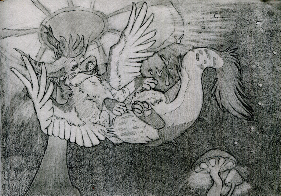 her char loves glowy things, so shes flying with some glowy fireflies, through a glowy little mushroom forest. :D