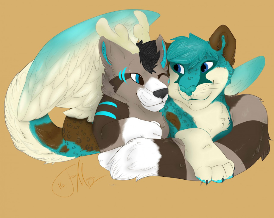 my character Skylar bonding with his mate Gadget over some loving snuggles