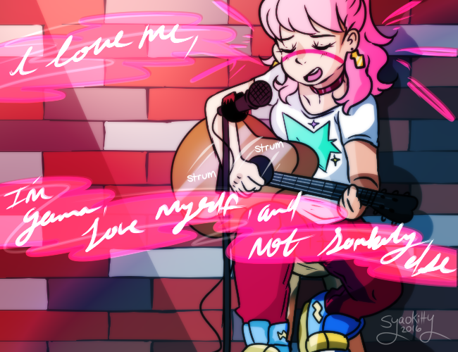 Test panel for a new comic style, it needs work, i also took inspo from the Jem and the holograms comic on how singing might work in a comic. Band girl here still needs a name as i can’t think of one i like.