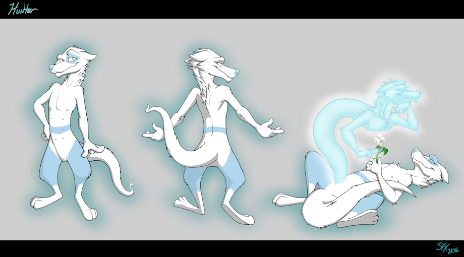 kinda got me into ghost/spirit stuff, and I decided to create my own character in that vein. This is the end result, a spirit halfling ferret named Hunter. His mother was a spirit who took the form of a ferret in order to seduce a mortal male into mating with her. As a result, Hunter has a physical form, but he can release his spirit from his body at will, for up to a day. While not containing his spirit, his body would be essentially immortal. His spirit form can be manipulated in several ways, including opting for legs and a tail over the standard ghostly tail bottom. His spirit form can also become completely invisible, and can be either corporeal (able to interact with the physical realm) or incorporeal (able to pass through things).