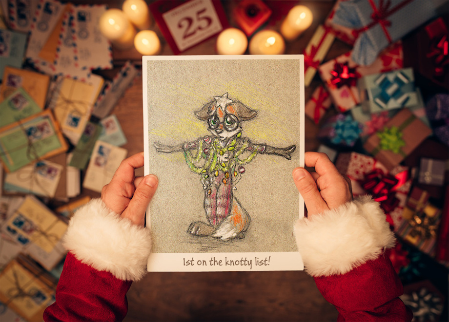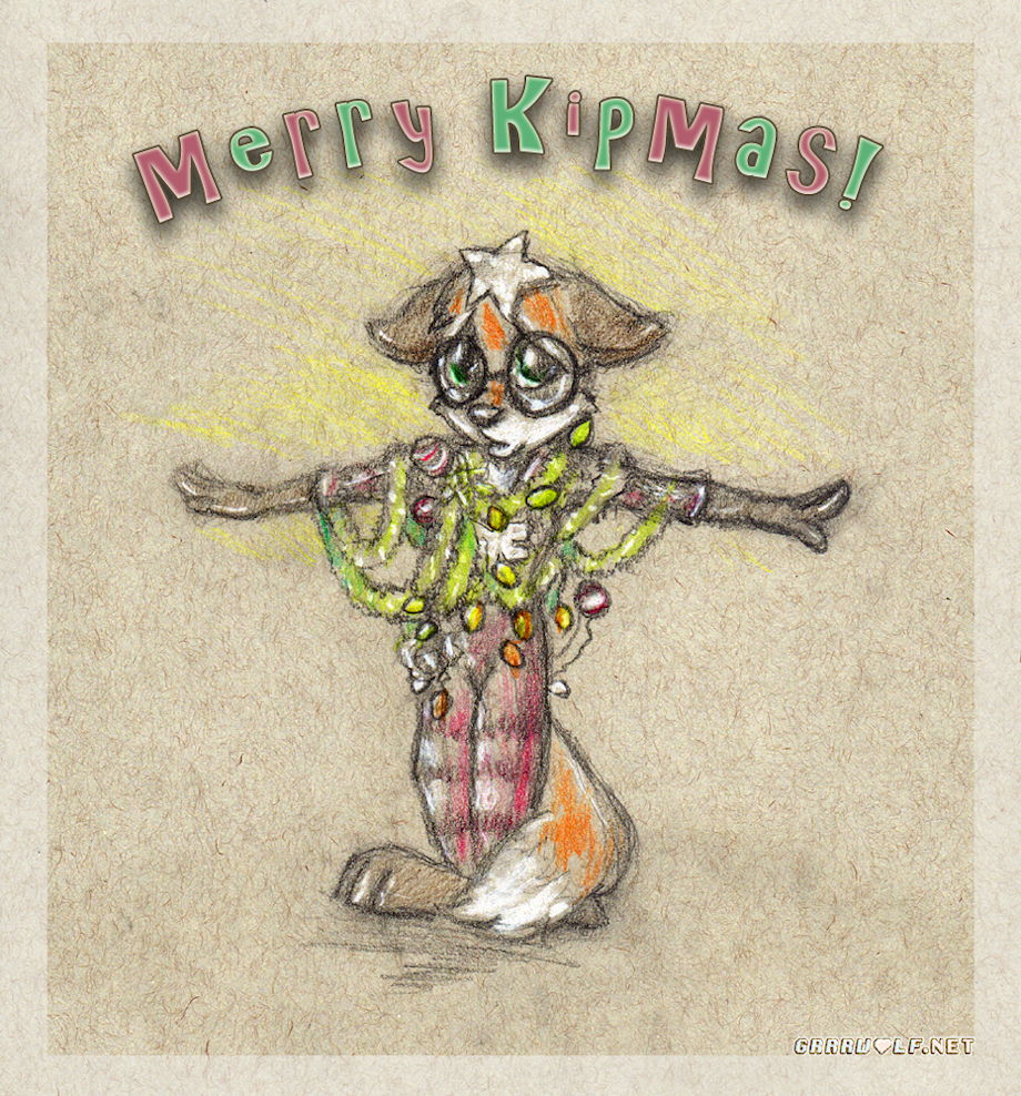's house a few weeks back, watching the movie Scrooged for the first time, and there's this adorable scene where this boy is shown off to his family, totally covered in lights and decorations. I said "Awwww! I should draw Kip just like that!" "You better not!" Kip pouted "Oh it's already begun! SEE!" I proudly beam as I triumphantly raise up my sketchbook. "AHHHHHHH!"