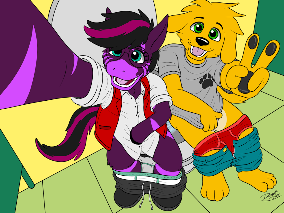 So this another commission from doggettdouglasmcdog of my fursona with doggett taking a selfie on a rather large toilet just having so fun with a dear friend