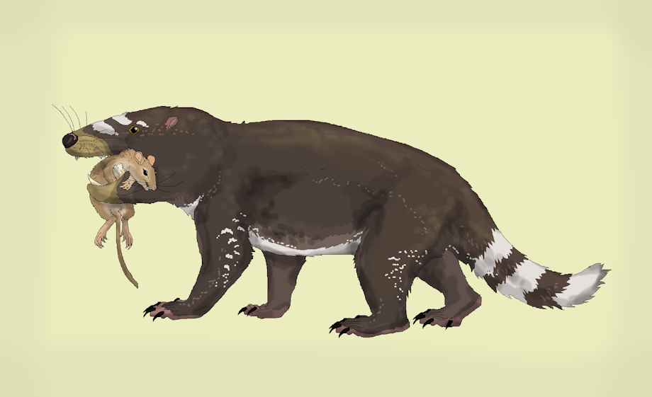 Here, a cimolodont multituberculate (possibly Ectypodus musculus) is eating purported competitor, a rodent. There is evidence that some multituberculates had omnivorous habits and could scavenge, so it makes sense that they could tackle other mammals; a SVP 2016 abstract even claims that there were some mainly carnivorous species.