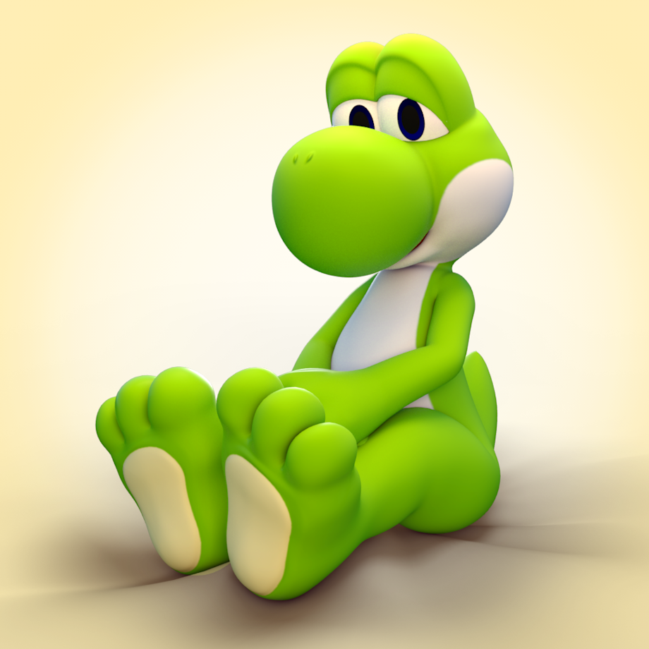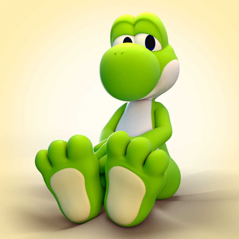 wanted to see how my Yoshi model would look with paws closer to Nintendo's "official" style (similar to Birdo and that one official bootless Yoshi pic). I don't think I got it 100% but people seem to like it anyway :}