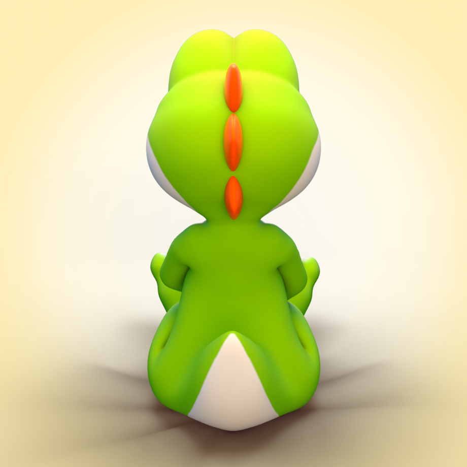 wanted to see how my Yoshi model would look with paws closer to Nintendo's "official" style (similar to Birdo and that one official bootless Yoshi pic). I don't think I got it 100% but people seem to like it anyway :}