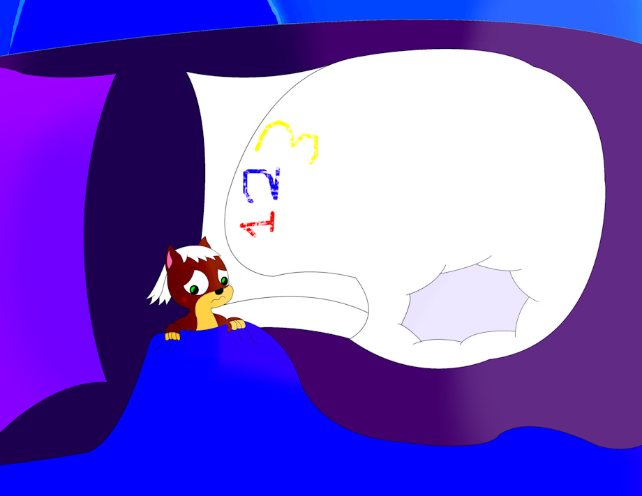 Much later that day, Lanny got ready for Bed. He was dressed in his purple Nightshirt and thick disposable diaper. After saying goodnight to his mom, he got in bed and closed his eyes. However, a strange light woke him up.