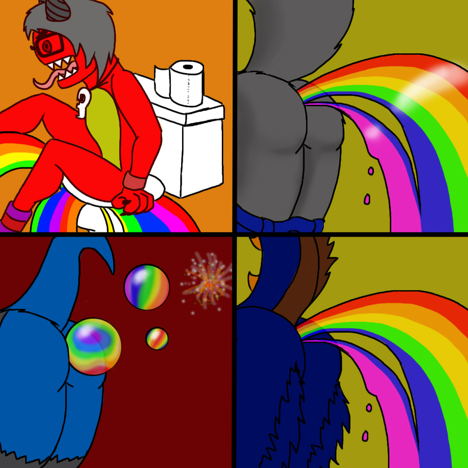 well this ones are for flyingaaronbombs, furryfreak8251994, jayri-veradian-avieock and draculkurohemming: (going clockwise) in my three imagined themes of just total rainbow expulsion in various ways due to the ghay plague (its spreading!)