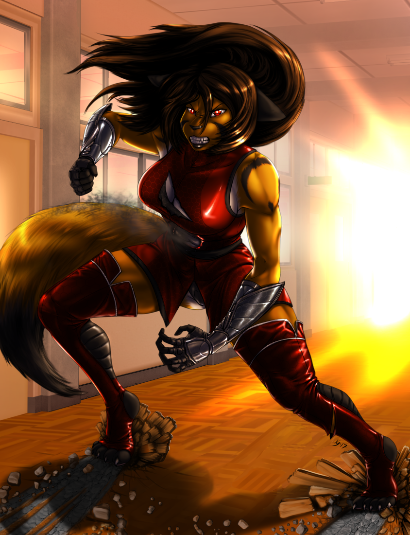 This was done for Desertfox over on Katbox. He gave me creative freedom, and I chose to show his character Fulvus bein' a badass, tanking an energy projectile like a boss. If you're not reading his comic, GET TO READIN'! http://desertfox.katbox.net/ (ATM their site is having problems at the time of this upload however so... yeah... hopefully they'll be back soon... THEN you can read his comic.)