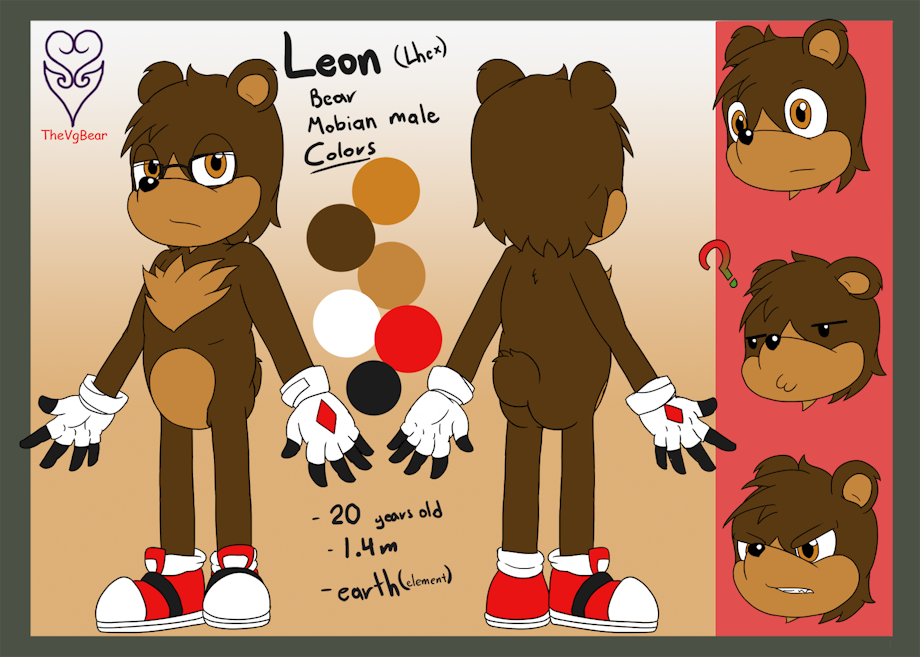 reference of my mobiansona(?). I choose the name Leon because that's the name of one of my favourite characters from videogames(Leon S. Kennedy from resident evil series) and bear because that's the specie of my fursona.