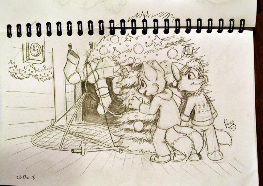 Two foxes pulling a prank on Santa Claus! Hehehe. :3