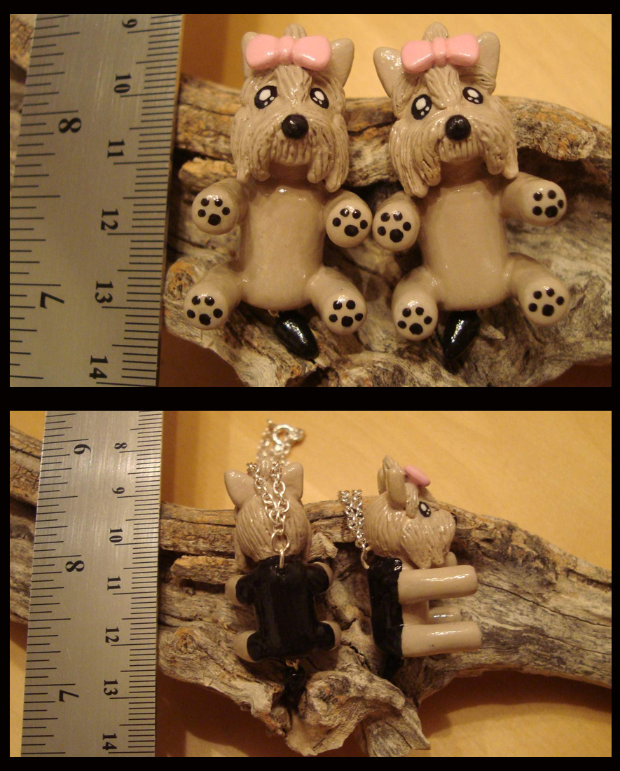 A pair of yorkish terriers, a commissioned sculpt set. By far the most difficult I've had to work with...kept creating a scottish terrier or some kind of cross breed scottish/yorkish before settling down on these cuties.